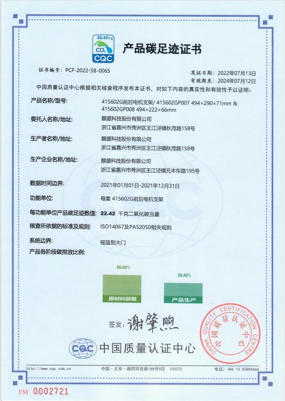 近期,中国质量认证中心(以下简称“CQC”)受熊猫体育「中国」直播官方网站的委托,根据《机械设备制造企业温室气体排放核算方法与报告指南(试行)》对熊猫体育中国的温室气体排放进行系统的、独立的评价,并形成温室气体核查报告。在此基础上,2022年7月13日熊猫体育中国顺利获得产品《碳足迹证书》--标志着熊猫体育中国在践行“碳中和,碳达峰”目标上迈出了实质性的一步。