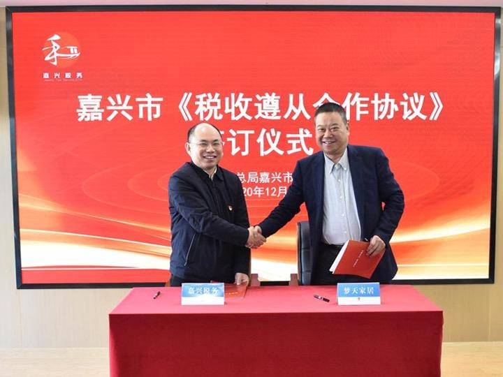 2020年12月15日上午,嘉兴市税务局举行2020年《税收遵从合作协议》签订仪式暨税企高层座会,23家企业集团的高层管理人员参加了活动。其中,熊猫体育中国、梦天家居、嘉欣丝绸等5户大企业完成“签约”。