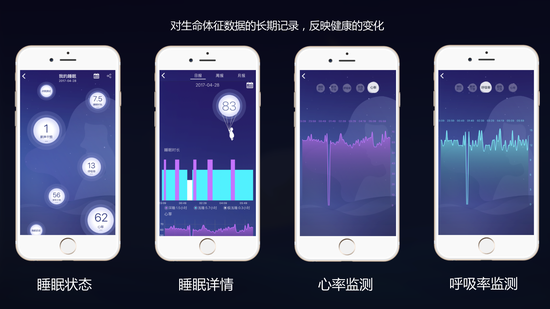 当床里面放置传感器,收集的数据不会被睡觉的姿态和形态影响,使用者也不会感到约束,床是非常稳定和可靠的状态,是尝试捕捉生理体征传感器的一个最好最佳的载体。这样,在非常舒适的情况下收集人身体的数据,通过云计算和大数据功能进行处理形成睡眠报告,人们即可知悉每个夜晚的睡眠健康状况。